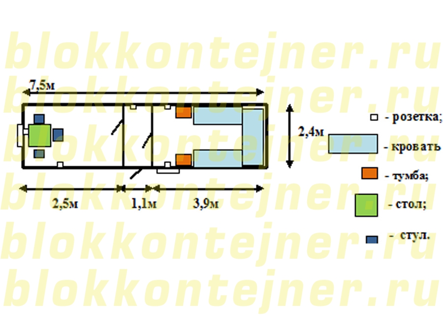 Блок -контейнер  БК 7,5*2,4*2,5 - 1 шт.  жилой на 6 человек